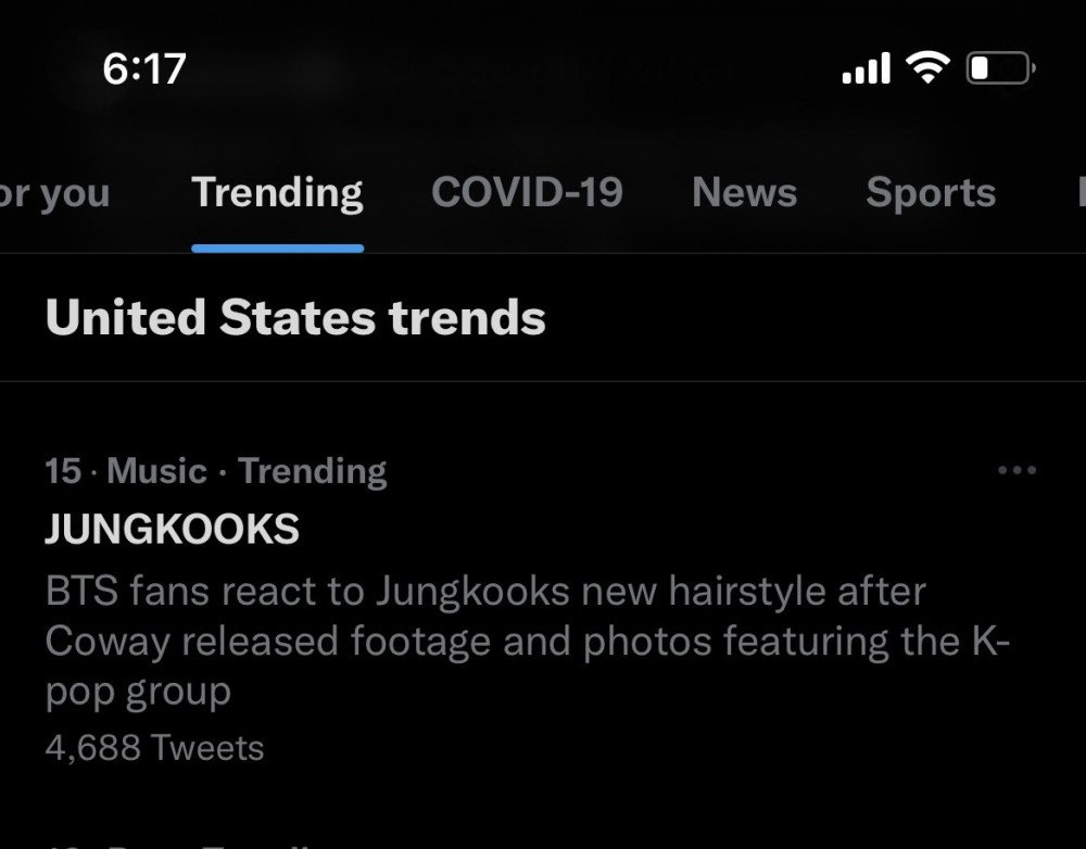 El propio nombre de Jungkook y las palabras relacionadas con el mismo tema del cabello siguieron siendo tendencia en Twitter, junto con las fotos y el video publicitario.
