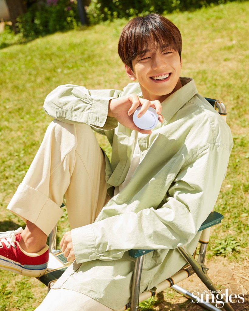 Para esta brillante sesión de fotos con tema de verano, Kim Min Kyu se asoció con la marca de cuidado de la piel ‘AGE 20’s’, logrando perfectamente el look de novio de ensueño. Se puede encontrar más de la sesión de cuidado de la piel de Kim Min Kyu con ‘AGE 20’s en la edición del próximo mes de ‘Singles’.