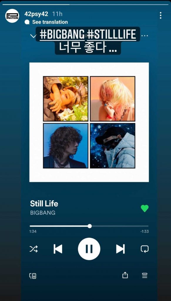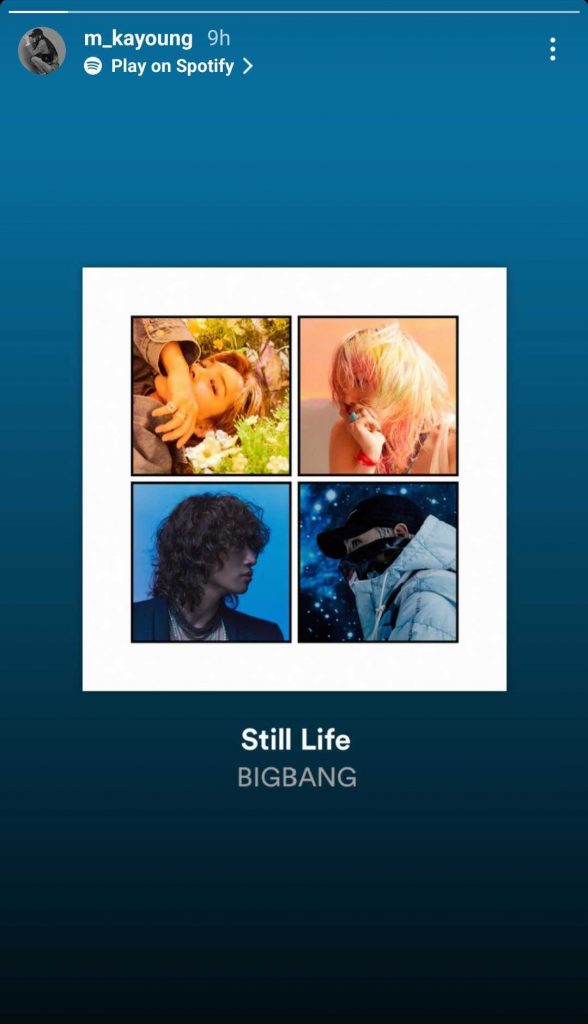 Nuestras estrellas favoritas de K-dramas también son grandes fans de BIGBANG. Moon Ga Young (True Beauty), Lee Dong Hwi (Reply 1988), Tang Joon Sang (Move To Heaven), Lee Eun Saem (All Of Us Are Dead), So Ju Yeon (Dr. Romantic 2), Kim Yong Ji ( Tale Of The Nine-Tailed) y Joo Won (Good Doctor) también subieron «Still Life» en su IG.